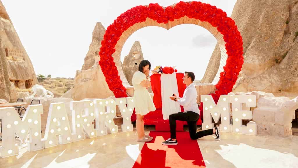 Seçtiğiniz evlilik teklifi konsepti ile Kapadokya manzarasına hakim alanlarda, vadi, teras, fanus veya restoran mekanlarında evlilik teklifi yapılmaktadır. Balon manzaralı evlilik teklifi genellikle gün doğumu saatlerinde başlamaktadır.